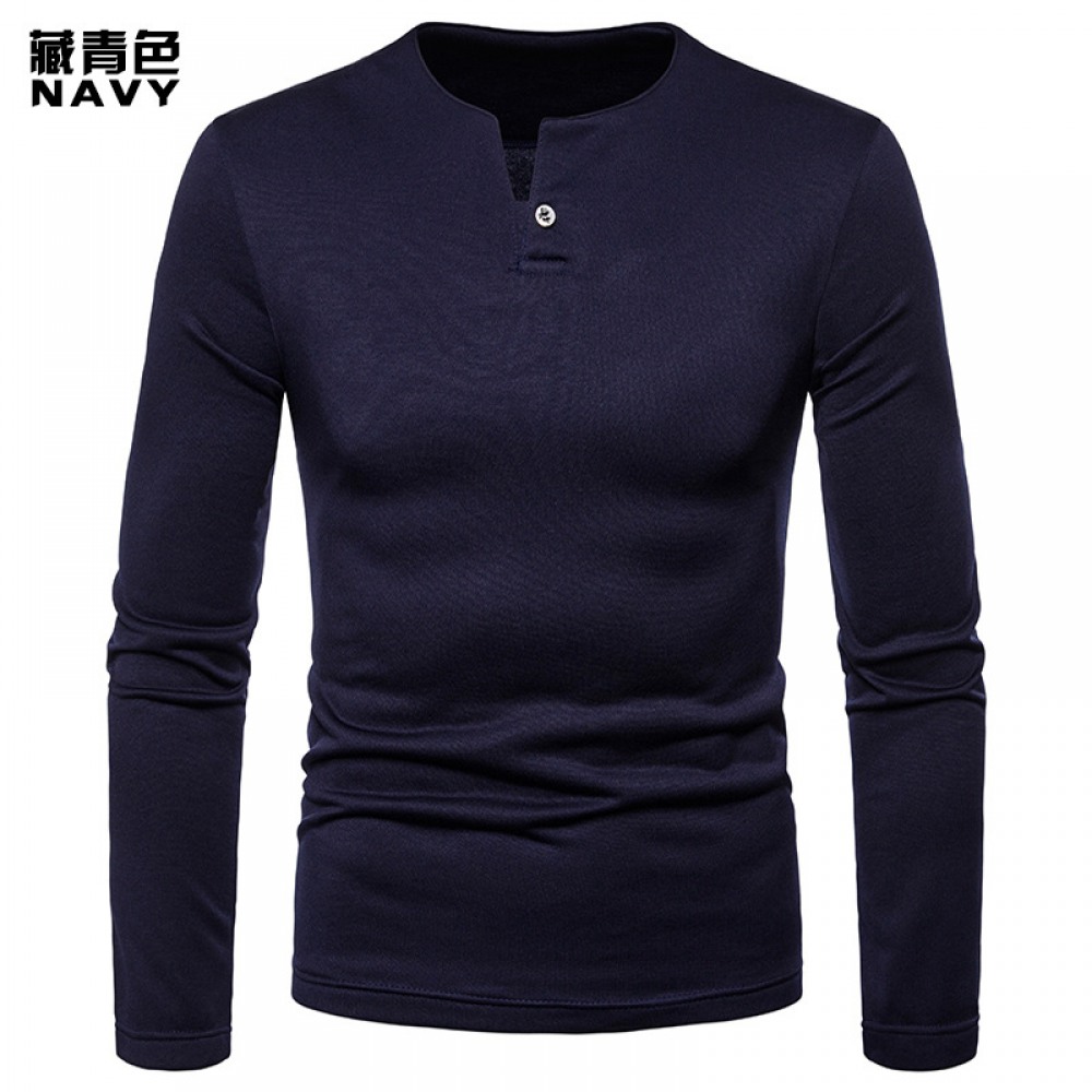 New Hollow Men's Autumn and Winter Long-Sleeved Base Waffle Henry Collar T-Shirt