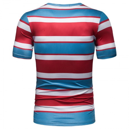 Summer Men's Short-Sleeved T-Shirt Men's Contrast Striped Slim Casual T-Shirts