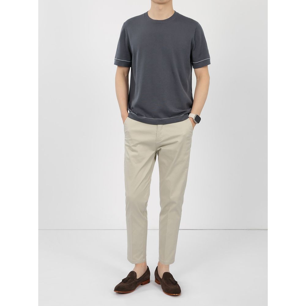 New Summer Men's Short-Sleeved T-Shirt Mens Contrast Striped Slim-Fit Casual T-Shirt