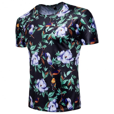 Men's 3D Printed Short-Sleeved T-Shirt Hawaiian Style Floral Printed Pattern Casual