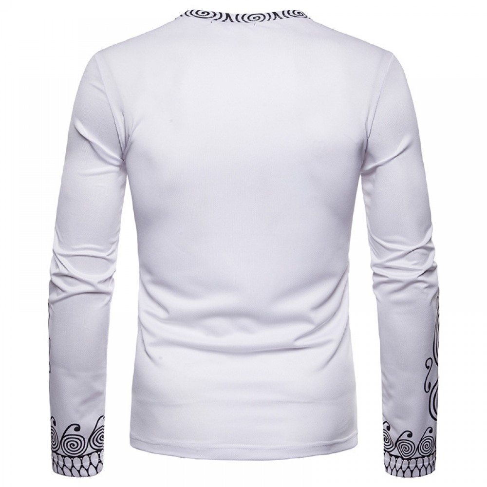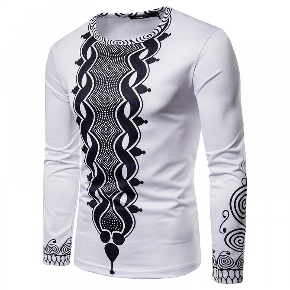 Fashion Men's Black and White Wave Dot 3D Printing Round Neck Long Sleeve T-Shirt
