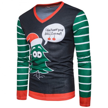 New Fashion Men's Round Neck 3D Christmas Tree Print Christmas Long-Sleeved T-Shirt