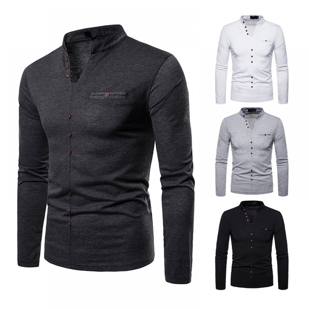 Men's Plus Size Plus Velvet Warm V-Neck Long-Sleeved T-Shirt Base Shirt