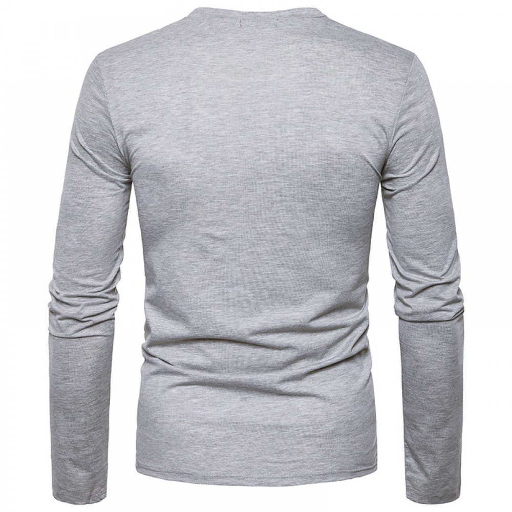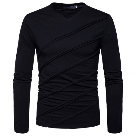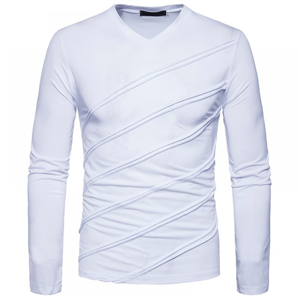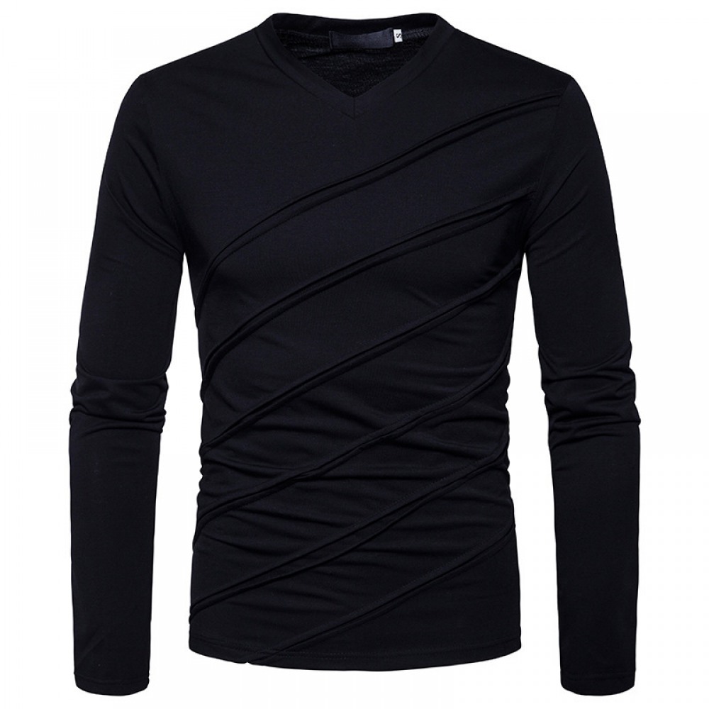 Fashion Fold Long Sleeve V-Neck Solid Color T-Shirt