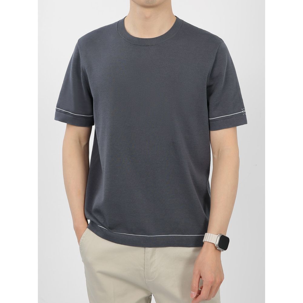 New Summer Men's Short-Sleeved T-Shirt Men's Contrast Striped Slim Casual T-Shirt