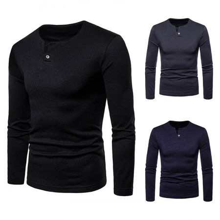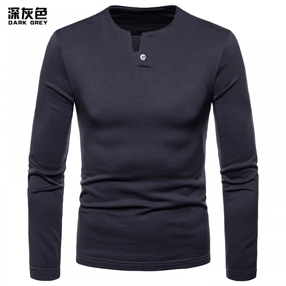 Men's Plus Size Plus Velvet Warm Henley Collar Long-Sleeved T-Shirt Bottoming Shirt
