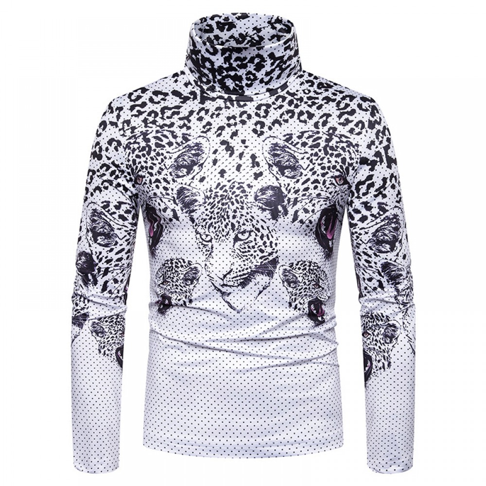 New Men's Large Size 3D Digital Classical Pattern Printing High Neck Long Sleeve T-Shirt Bottoming Shirt