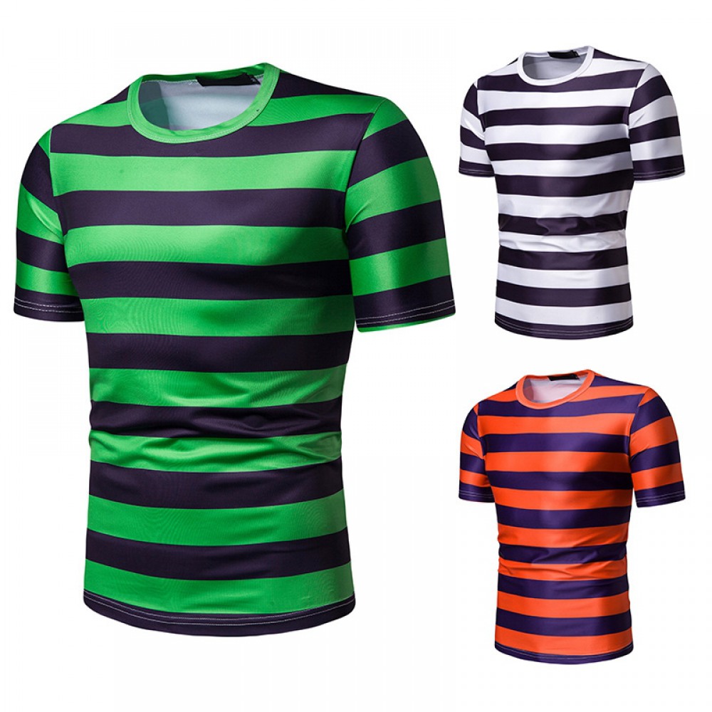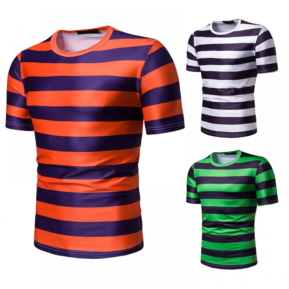 New Summer Men's Short-Sleeved T-Shirt Mens Contrast Striped Slim Casual T-Shirt