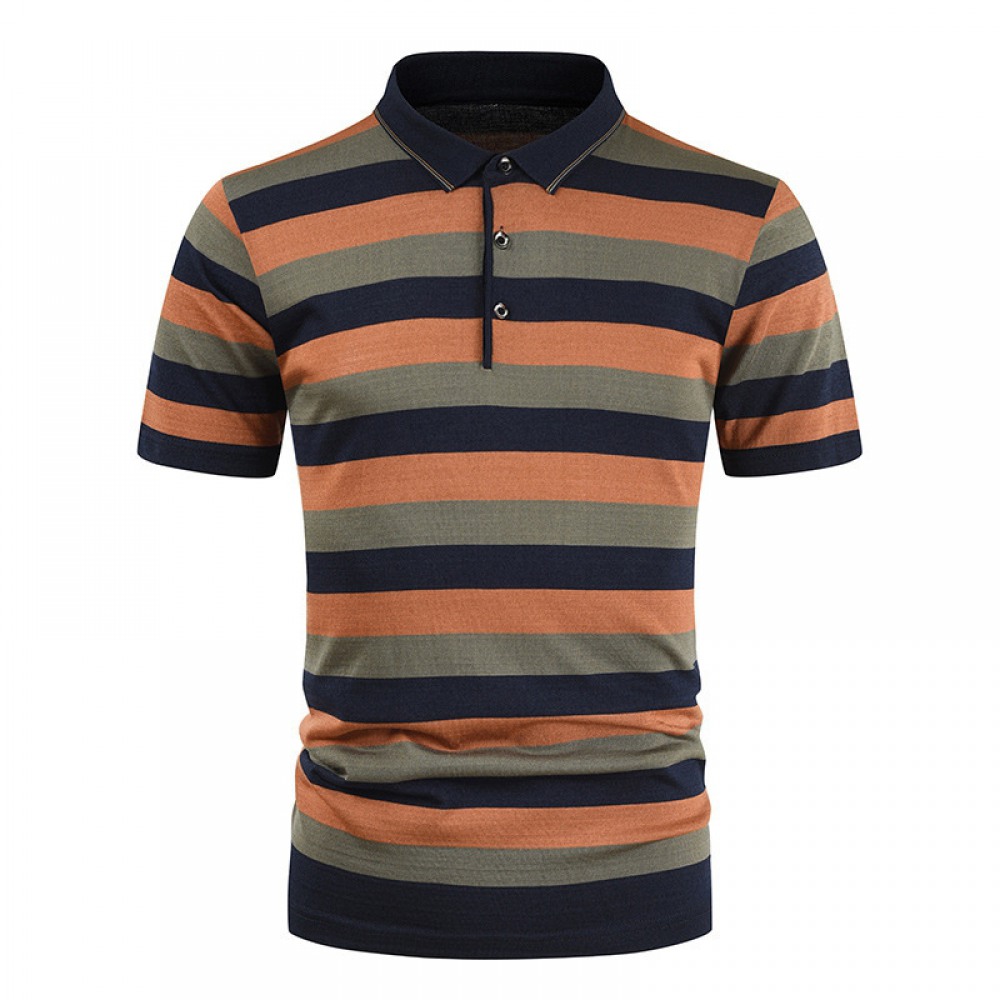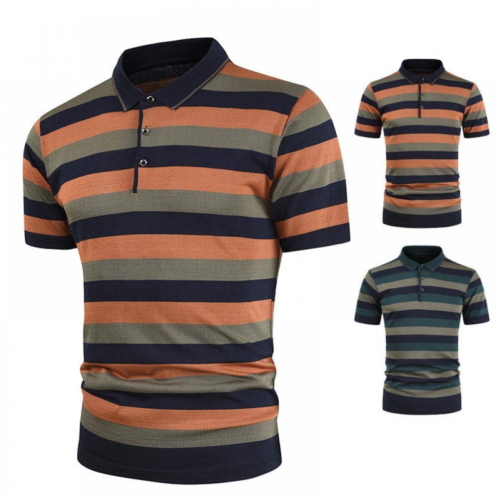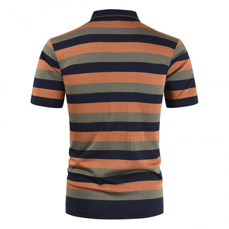 Men's Style Simple Black and White Striped Lapel Short Sleeve Plus Size T-Shirt