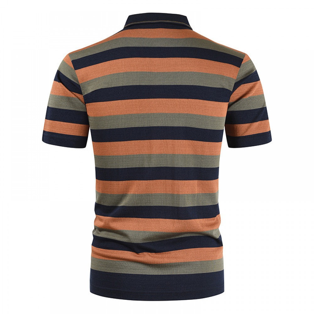 New Summer Men's Striped Color Matching Pockets Men's Casual T-Shirt Short Sleeves